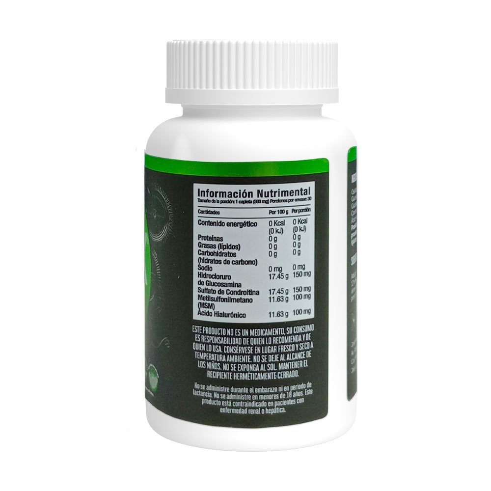 INGREDIENTES: Hidrocloruro de Glucosamina, Sulfato de Condroitina, Metilsulfonilmetano (MSM), Ácido Hialurónico.